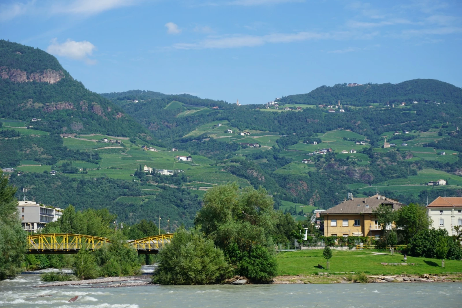 +4Трентино-Альто Адидже - одна из немногих итальянских областей, не имеющих выхода в море. Ее территория располагается на севере Аппенинского полуострова, занимает 1361 тыс. кв км, является гористой и включает величественно красивую группу Доломитовых Альп и большое число маленьких горных озер. На севере регион граничит с Австрией, Швейцарией, что не могло не повлиять на язык и уклад итальянцев. В северной части области (провинция Больцано) население хорошо знает немецкий язык, область официально двуязычна. Область Трентино, находится в центре итальянских Альп. Она служит географическим и культурным "мостом" между Европой и средиземноморскими странами.